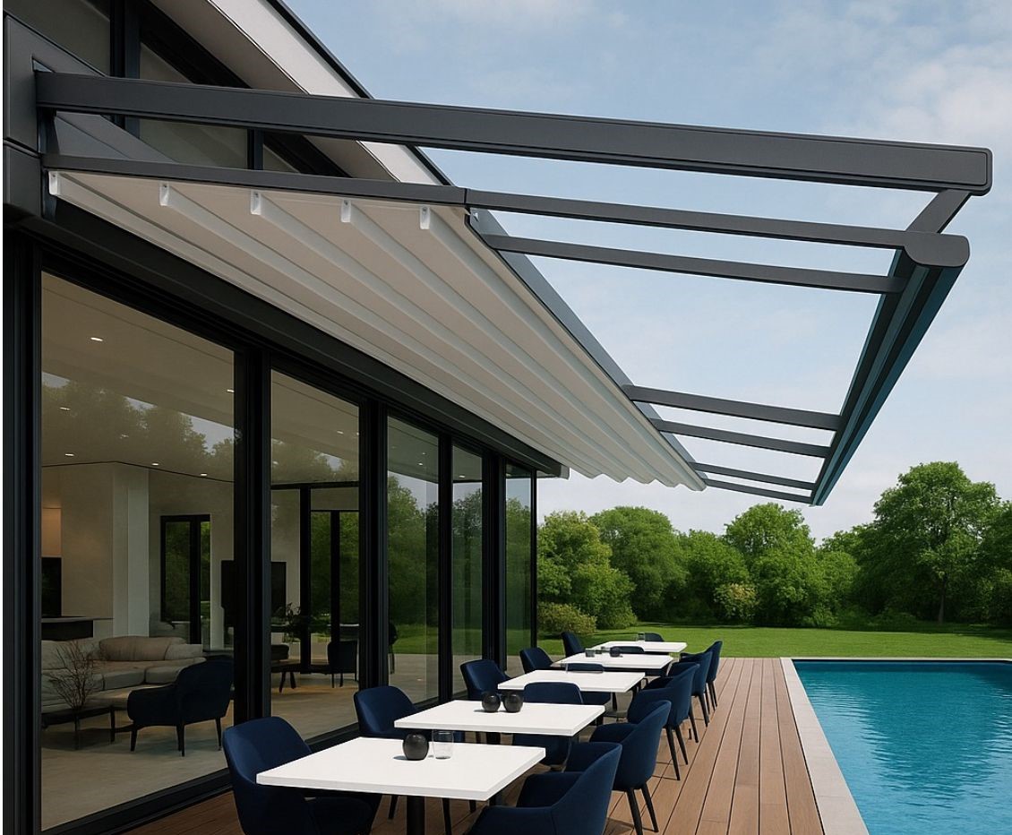 نوفر مظلات مصنوعة من خامات PVC المقاومة للعوامل الجوية والتقنيات المناخية بأشكال متعددة.